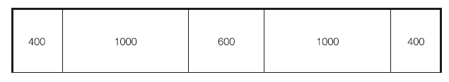 | One 600 mm column with 1 chest drawer, 4 drawers and 3 shelves. |