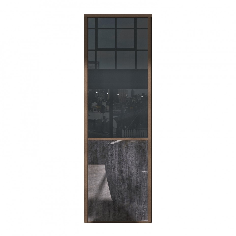Do you want to match your closet doors to your resolutely industrial interior decor? The City closet front gives your interior a chic industrial feel due to the combination of glossy authentic anthracite painted glass and glossy lava ceramic panels. The added touch? The bronze finish of the profile and the crosspieces which reinforce the industrial feel.