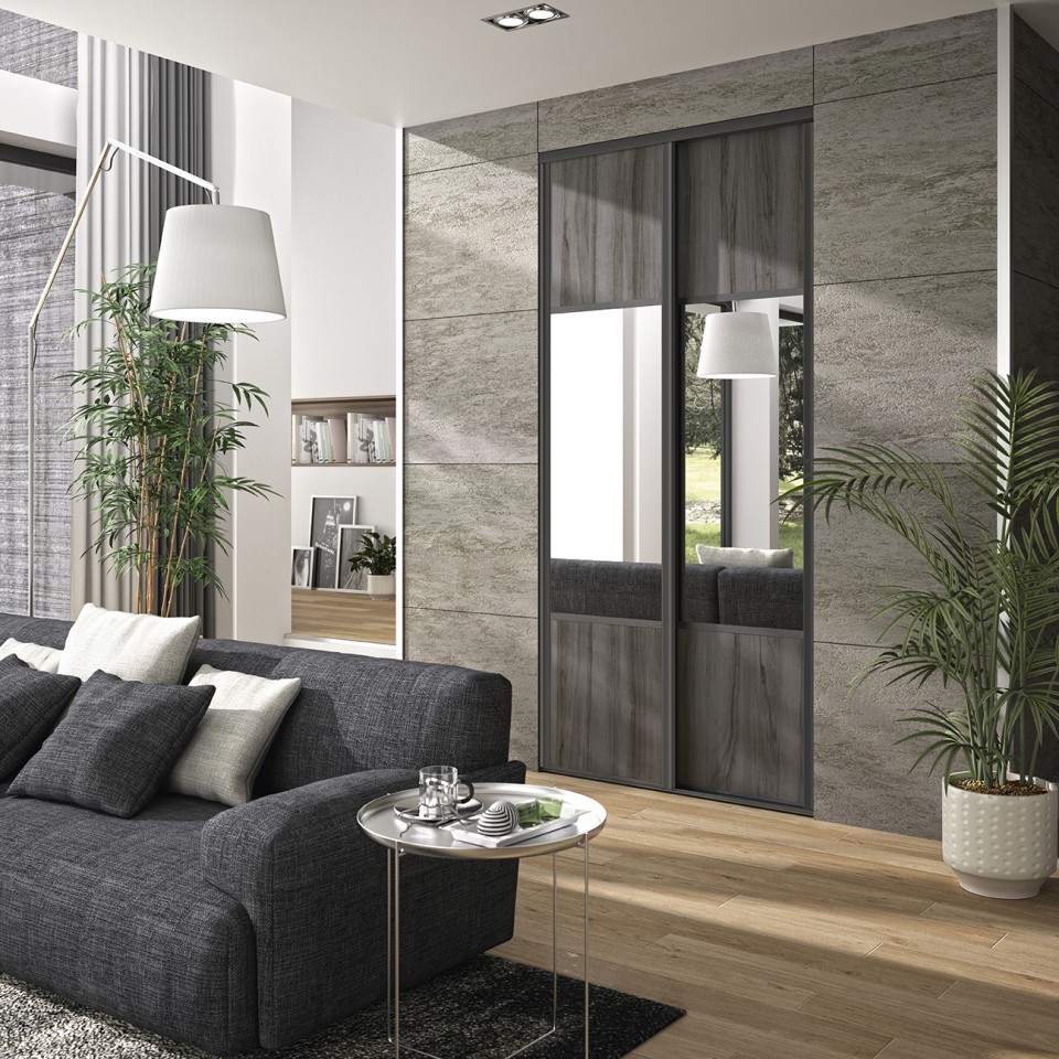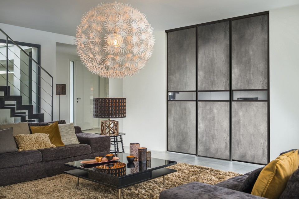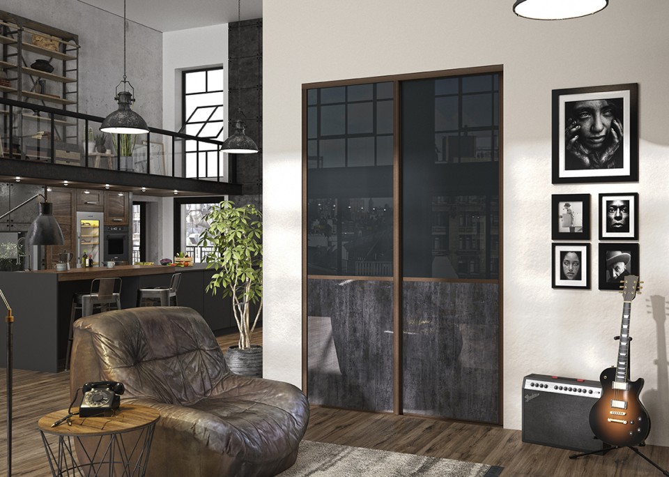 The industrial style gives pride of place to unfinished materials: a mixture of wood and metal. Closet doors which add character to your interior.