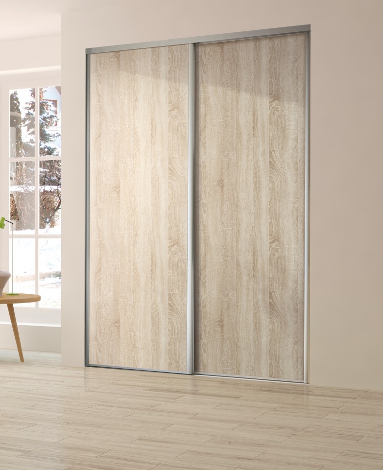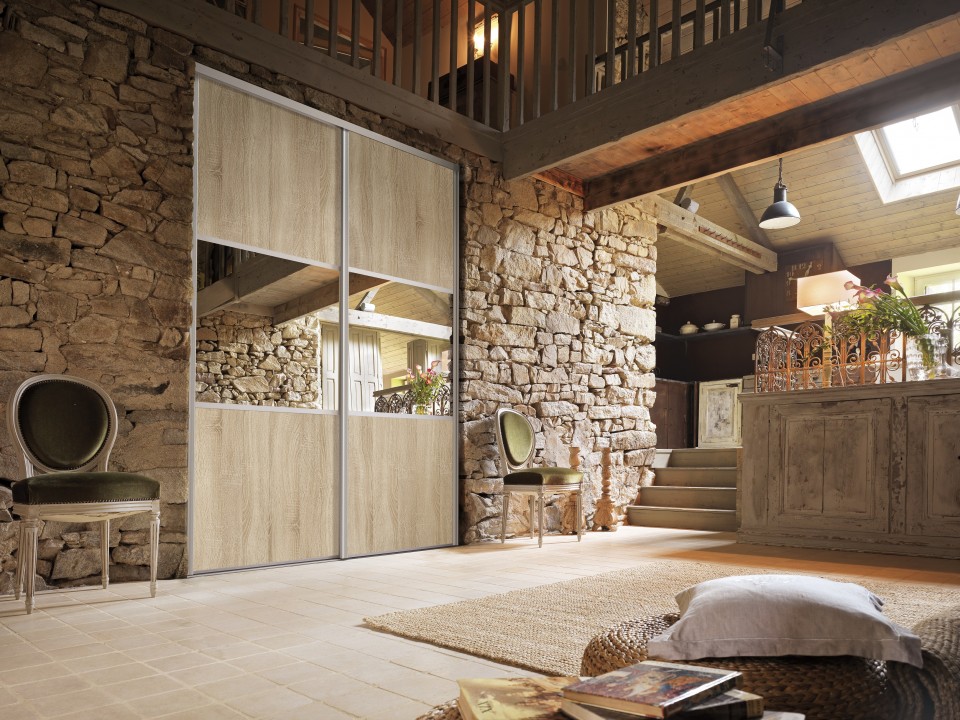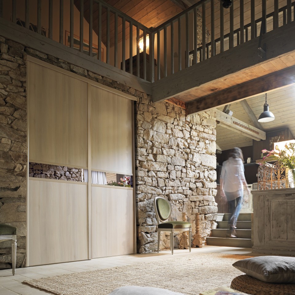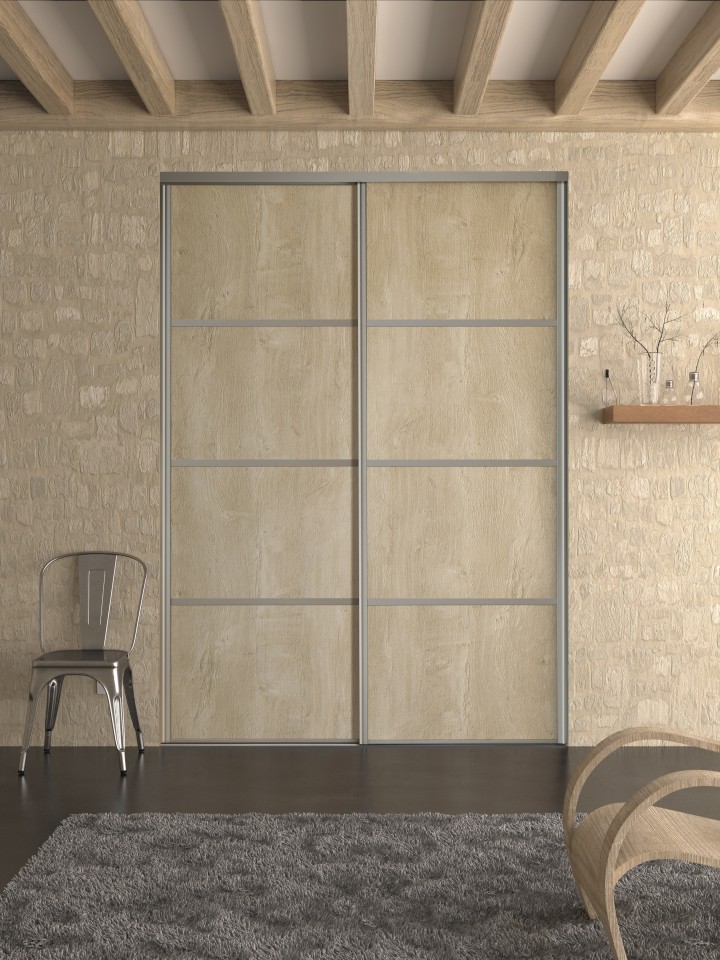 What could be better than getting back to nature? The various closet door fronts available in the Natural Atmosphere category have a cosy appearance which will lead you into a calm and restful world by playing on material (mainly wood) effects and soft pastel colours.