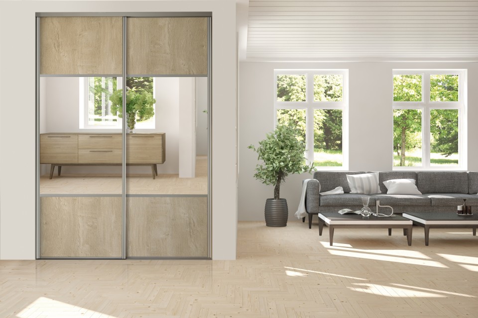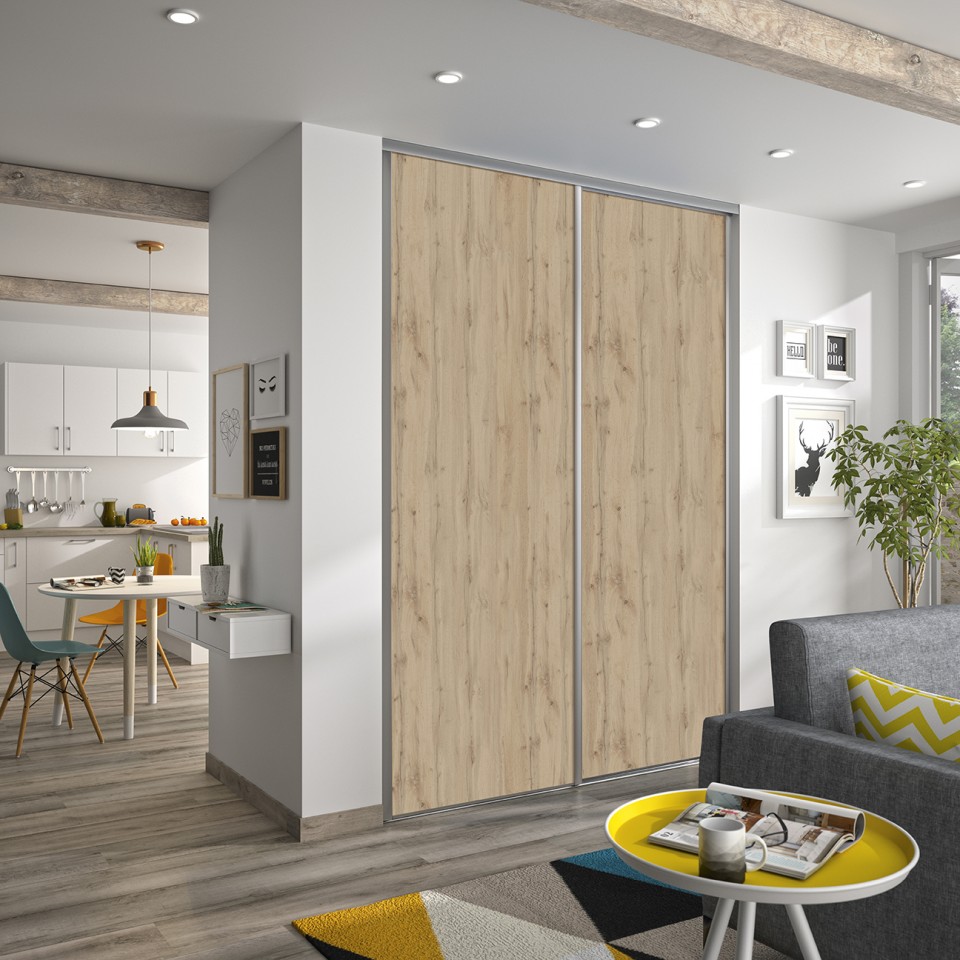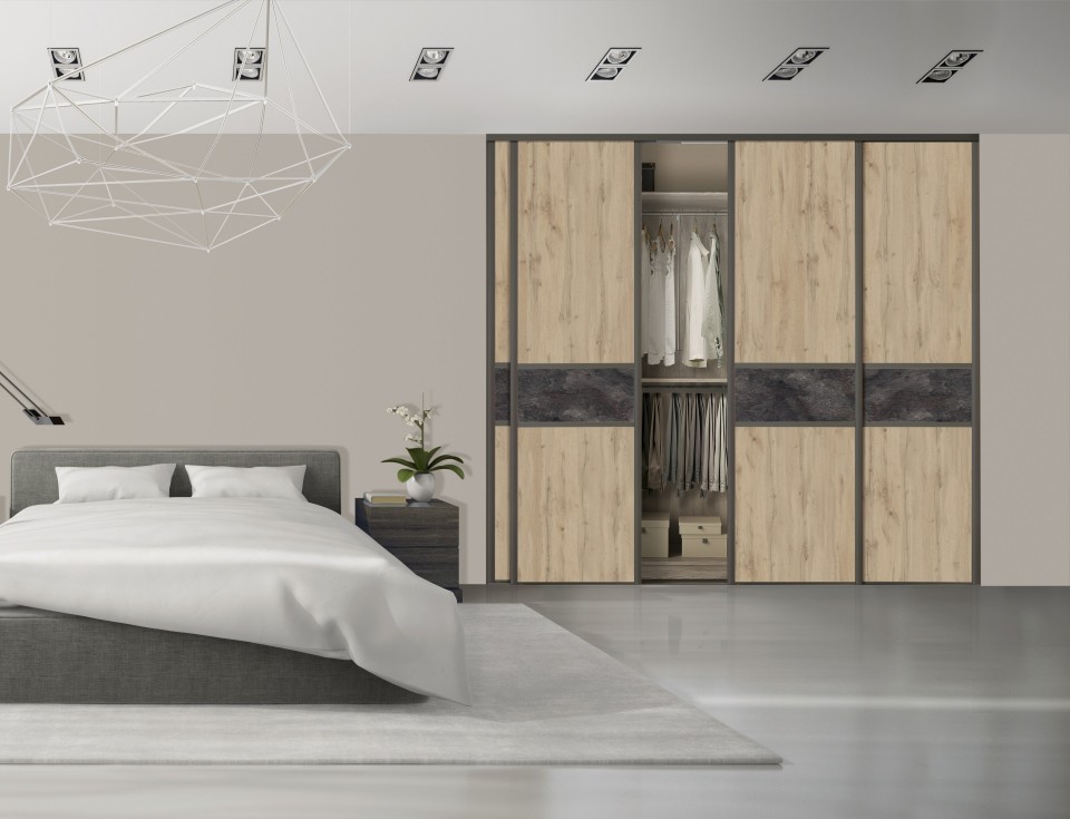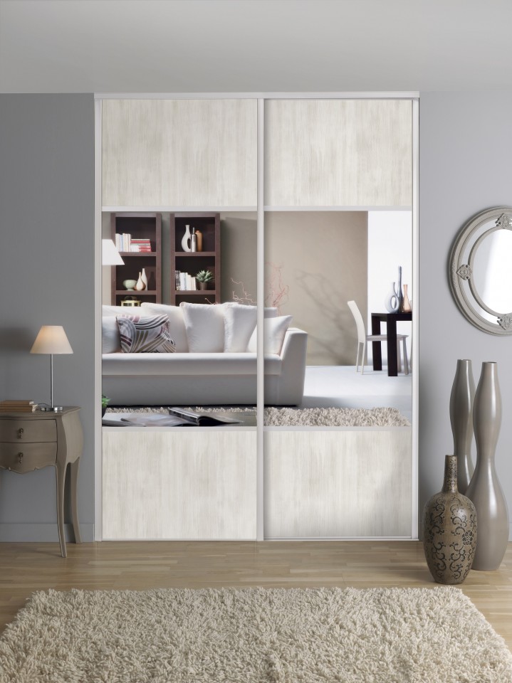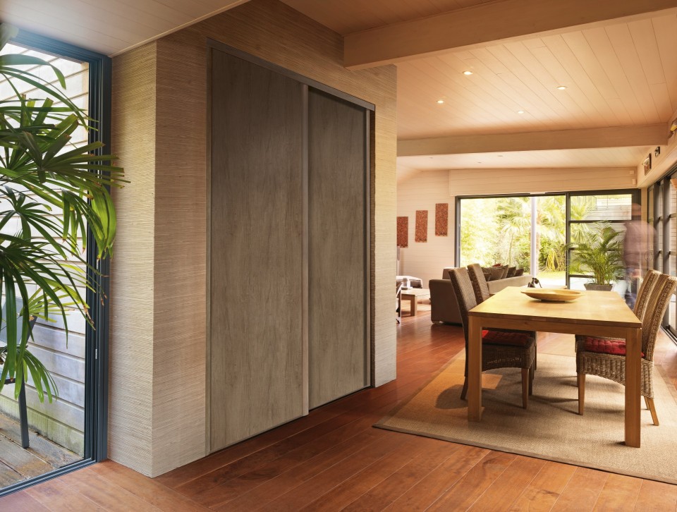 What could be better than getting back to nature? The various closet door fronts available in the Natural Atmosphere category have a cosy appearance which will lead you into a calm and restful world by playing on material (mainly wood) effects and soft pastel colours.