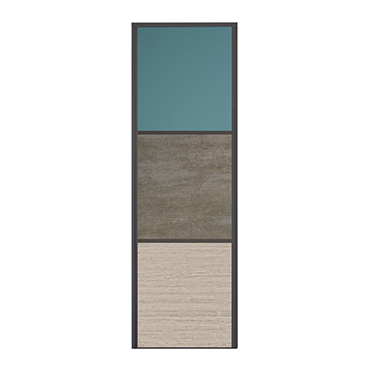 Dare to be original with these closet doors combining Niagara green, grey woven concrete and planed oak. A mixture of colours and material effects. Niagara green is the first partition that brightens up your room with its flashy effect. Grey woven concrete and planed oak give body and character to your interior. An atmosphere which is sure to be appreciated!