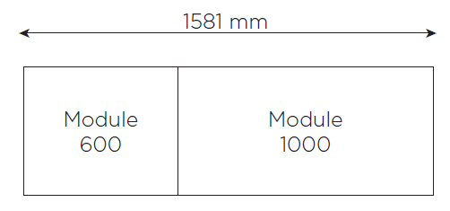Un module étroit et bien équipé, complété par une penderie sur 1 mètre de large et 2 niveaux.